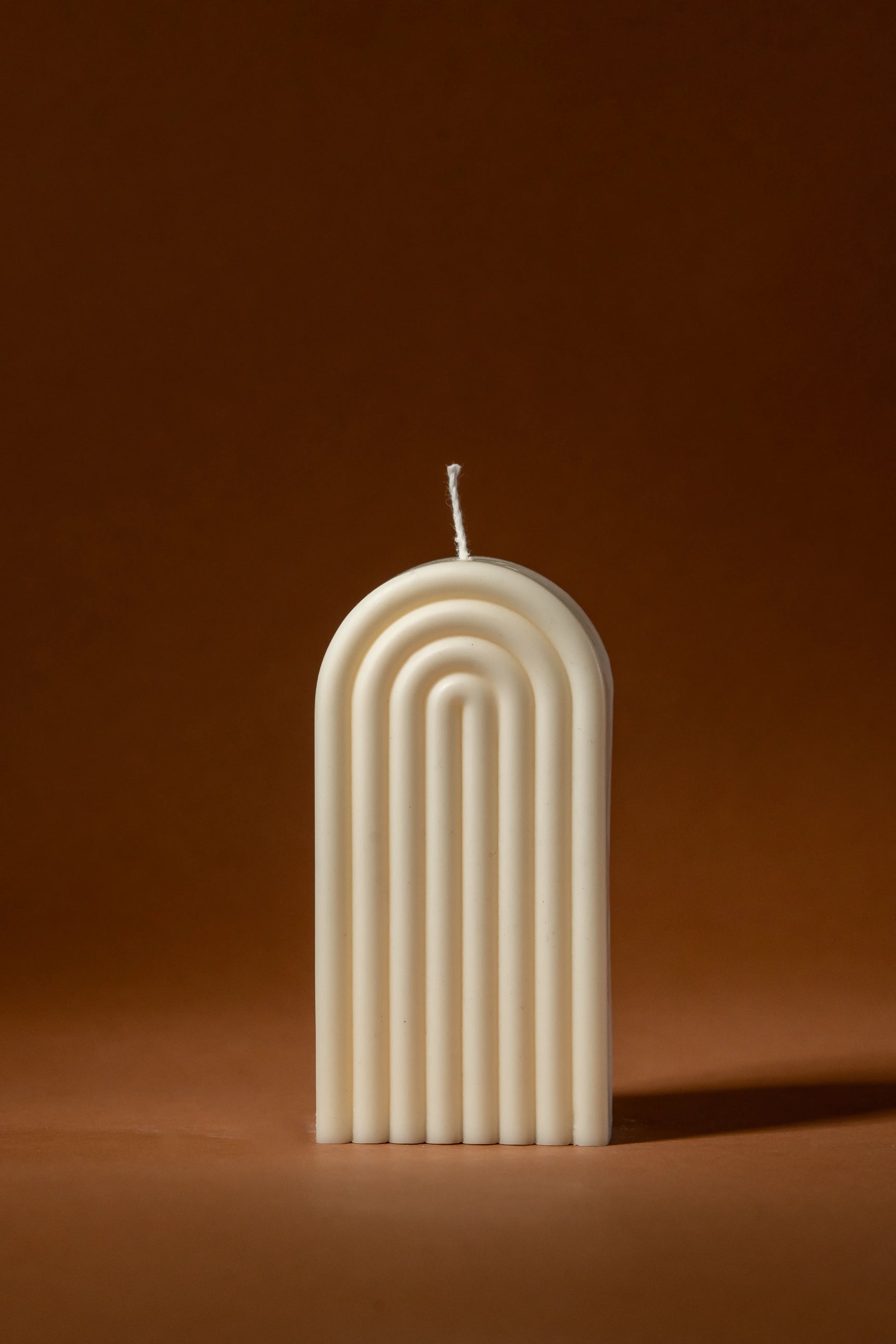 Our rainbow shaped pillar candle adds a cheerful and delicate touch to any home with its bold lines and soft curves.